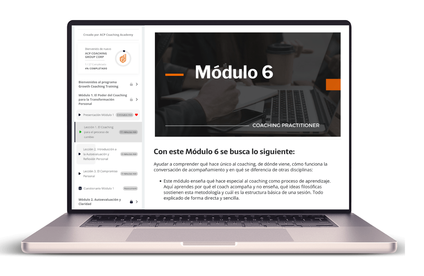 Lo que hace que este entrenamiento sea único es que está basado en años de experiencia práctica, combinando técnicas probadas de coaching con un enfoque accesible y sencillo.