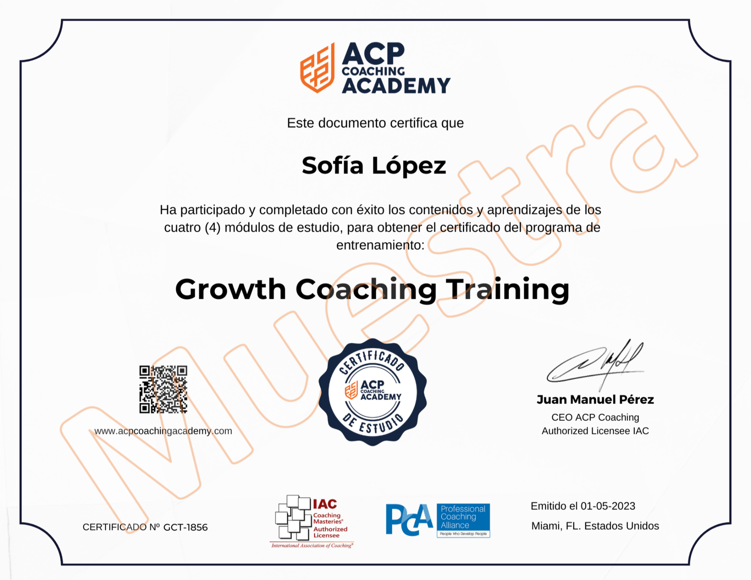 Sí, al completar las lecciones y hacer los cuestionarios de cada módulo del programa recibirás un certificado que acreditará que has finalizado el "Growth Coaching Training" y tendrás las herramientas necesarias para aplicarlo en tu vida diaria a nivel personal y profesional.